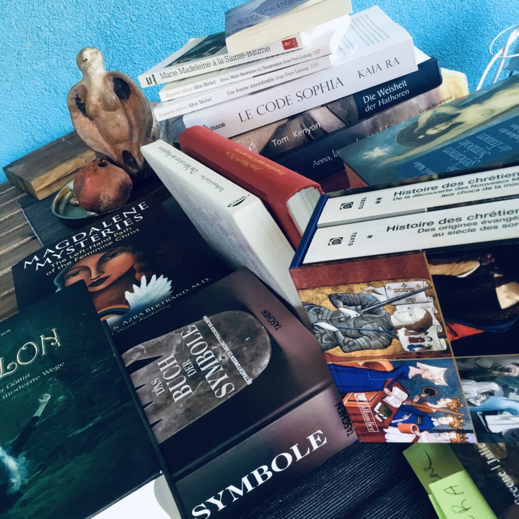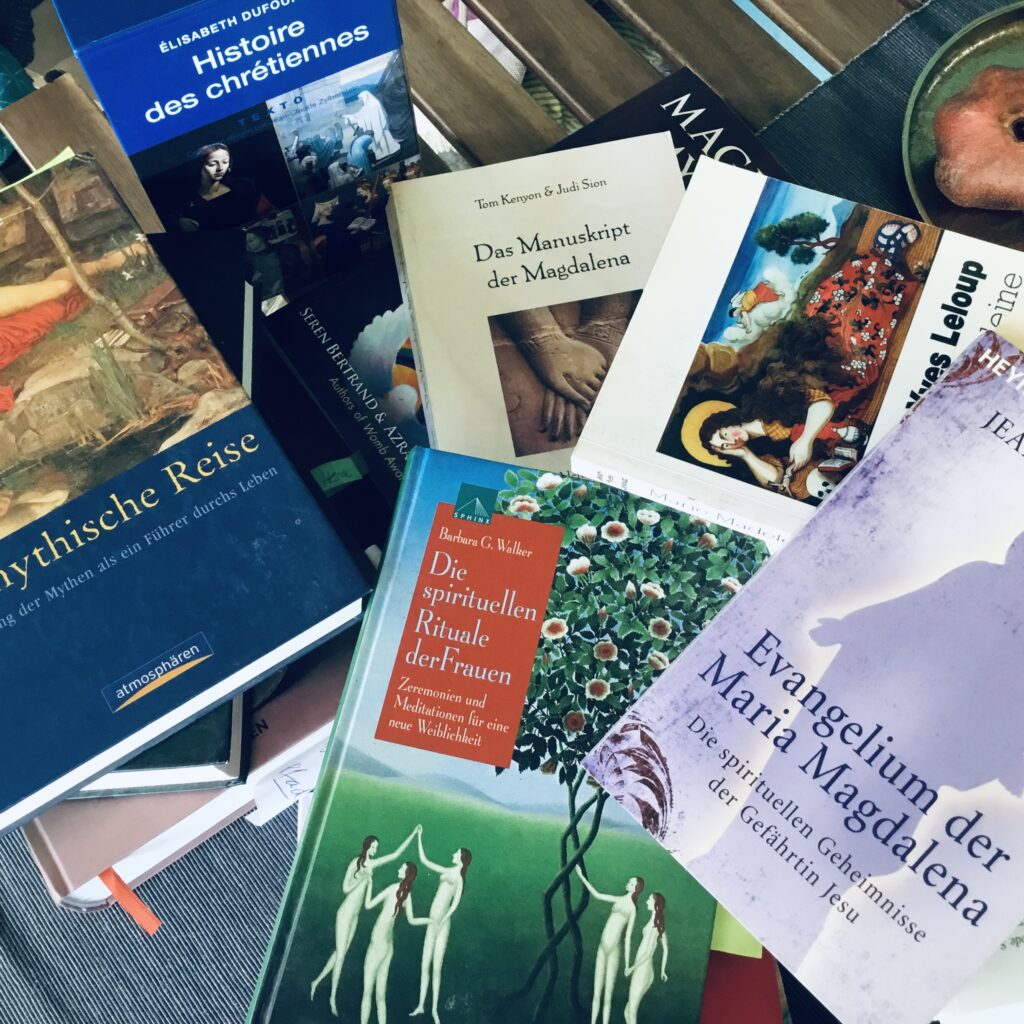 Und so grabe ich heute in den Geschichten um die Gottesmutter Maria und um Maria Magdalena und ihre Rolle in der Christianisierung Europas. Ich erkunde das Evangelium der Maria Magdalena, einer frühen gnostischen Schrift, die 1869 in Kairo entdeckt wurde. Und ich drösele die Menschheitsgeschichte mit diesem neuen Blickwinkel für mich auf.
